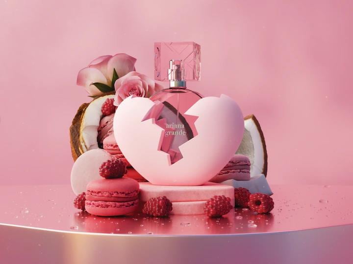Cu Thank u, next!, Ariana prezinta un parfum irezistibil de dulce. Para fructata si zmeura se intalnesc cu dulceata cremei de cocos si aroma florala a petalelor de trandafir roz.