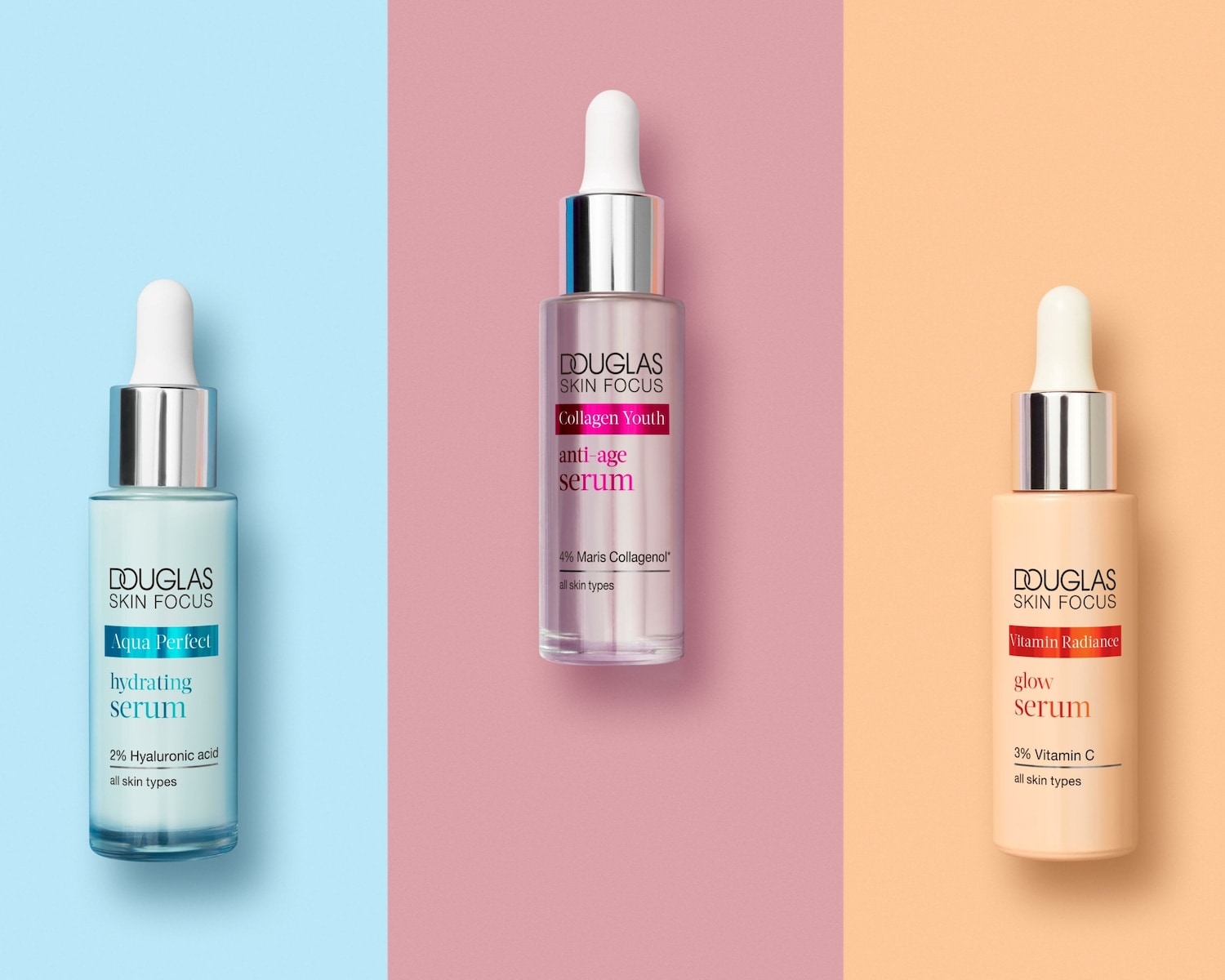 Descoperă gamele de îngrijire Douglas Skin Focus: produse concepute să lucreze în armonie perfectă și îmbogățite cu ingrediente active puternice, menite să dezvăluie tot potențialul de frumusețe al pielii tale.
